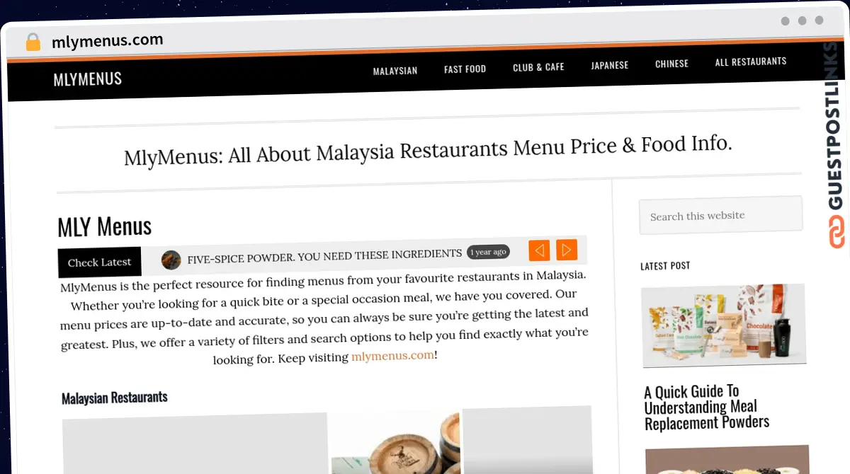 This service offers High-quality DoFollow Guest Posting on the Food website.